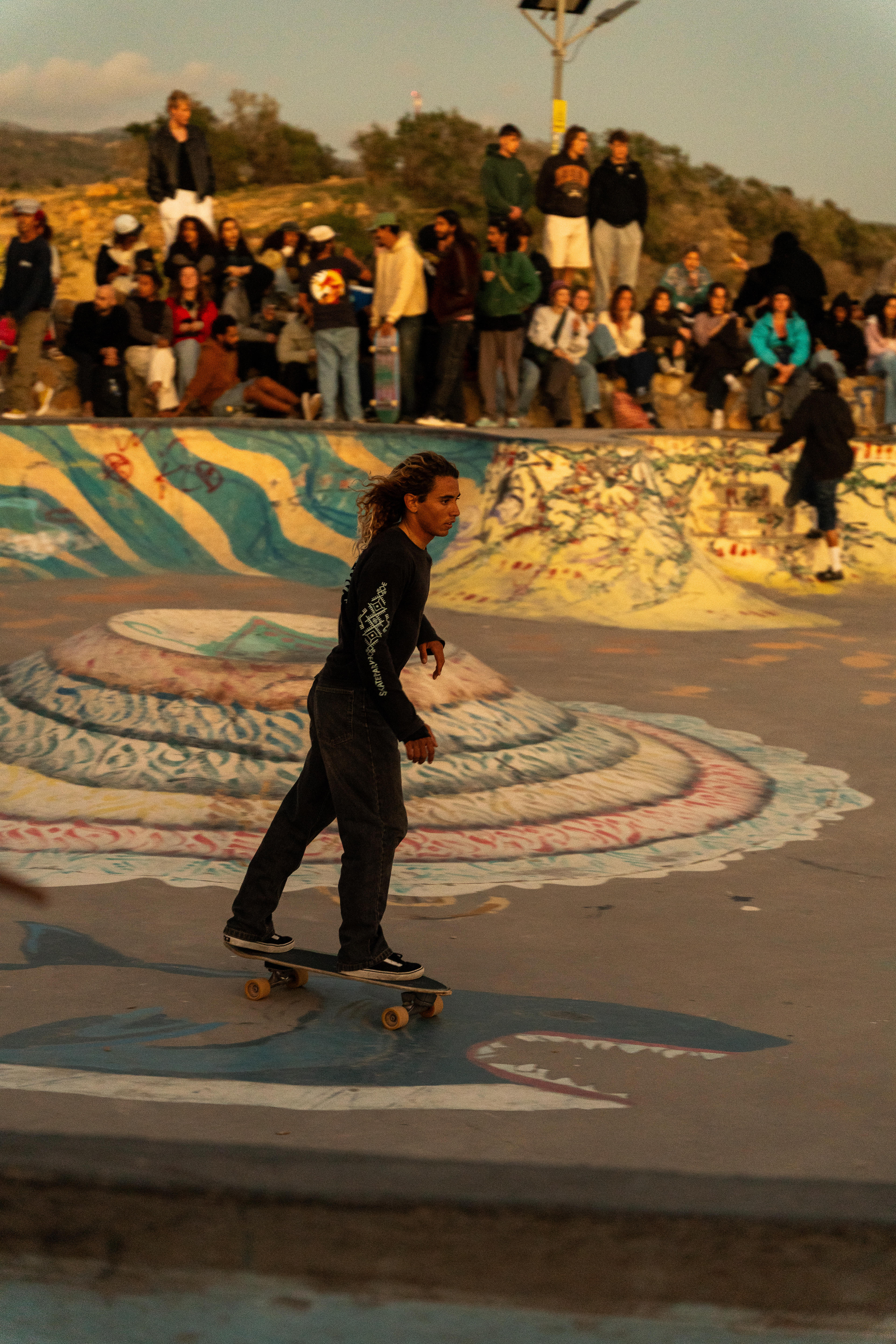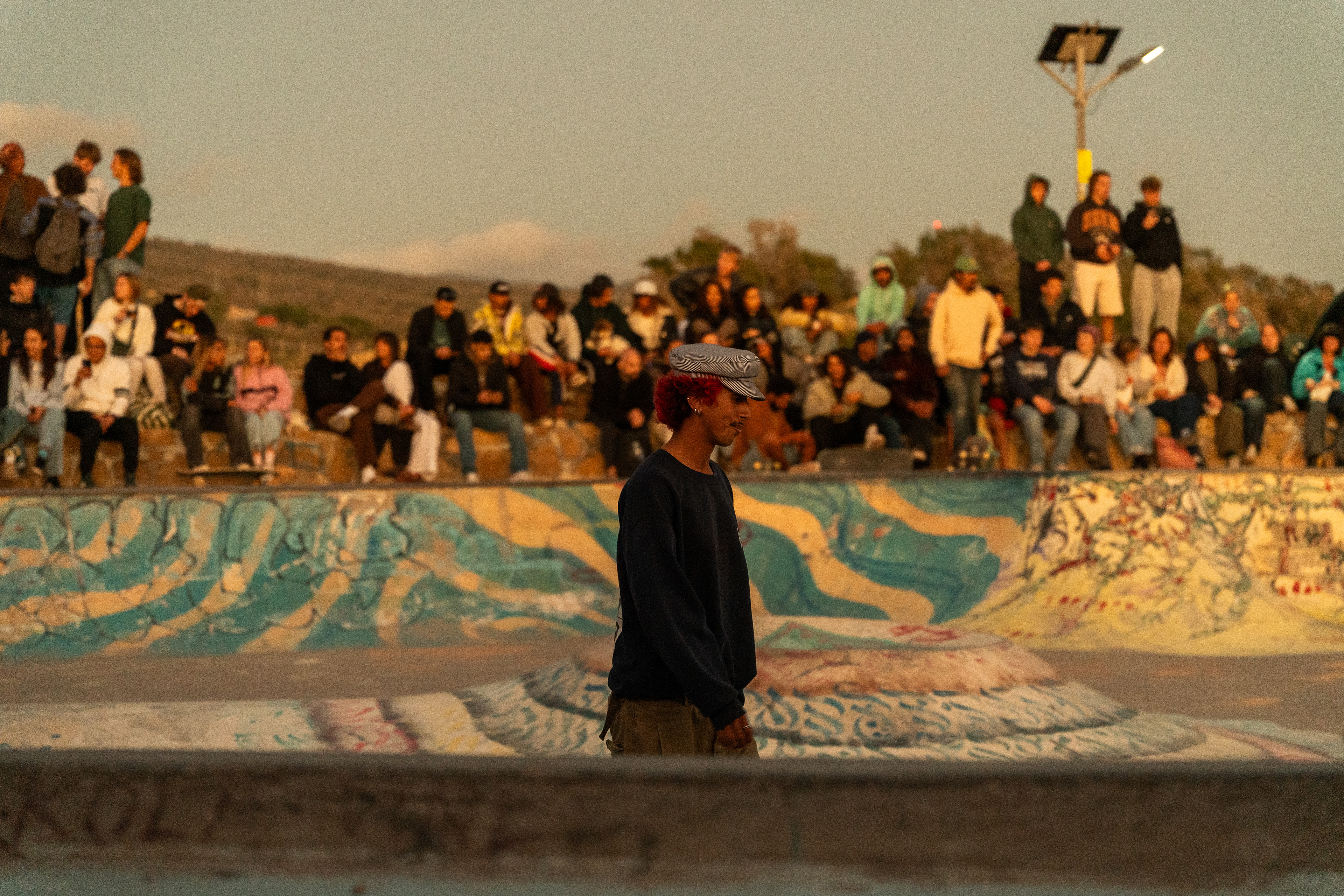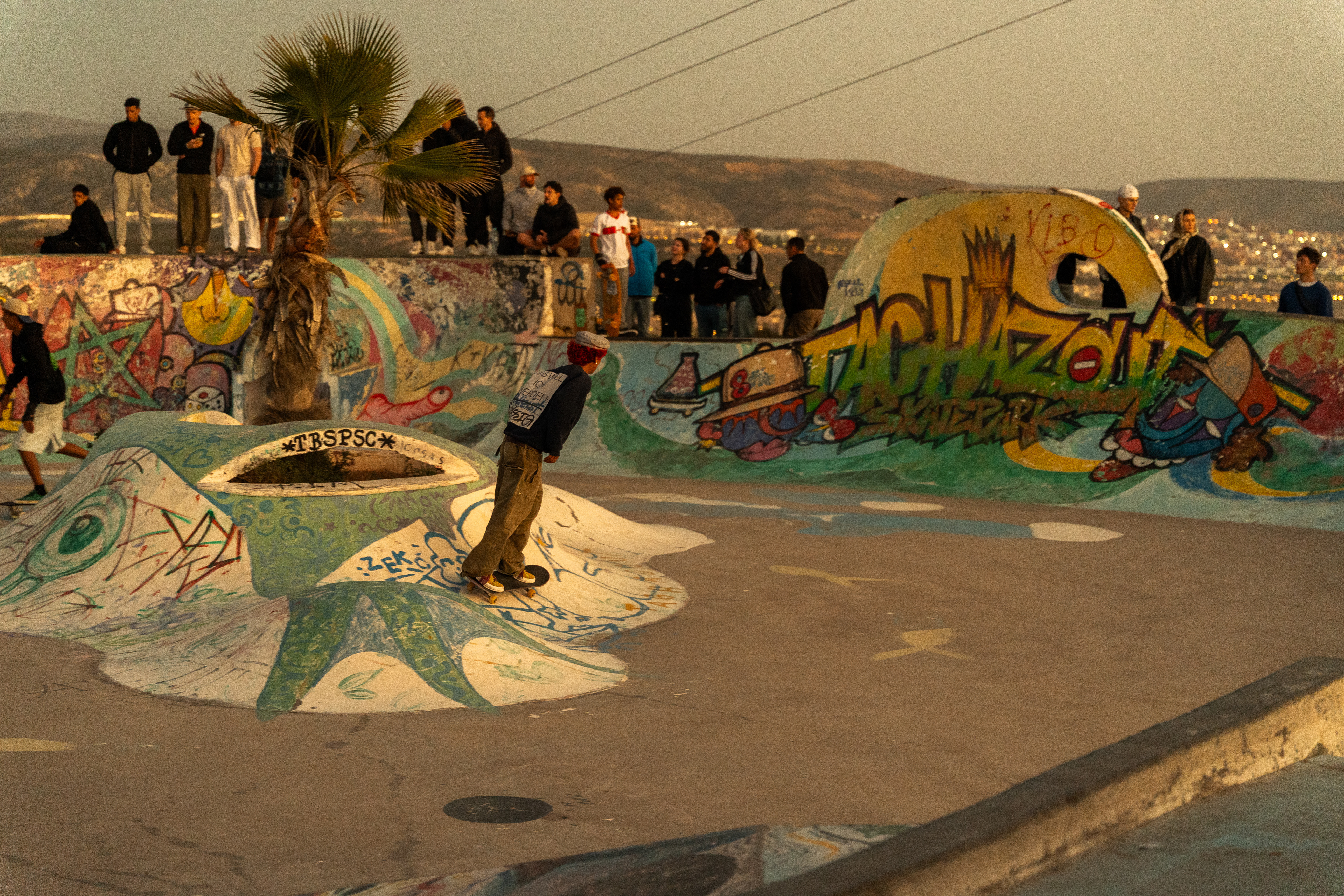 Skate night at the famous Taghazout Skatepark, where action, sunsets and moroccan mint tea all come toghether